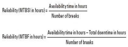 Reliability: A measure of how long a service, component or CI can perform its agreed function without Interruption. It is measured as the mean time between service incidents (MTBSI) or mean time between failures (MTBF)